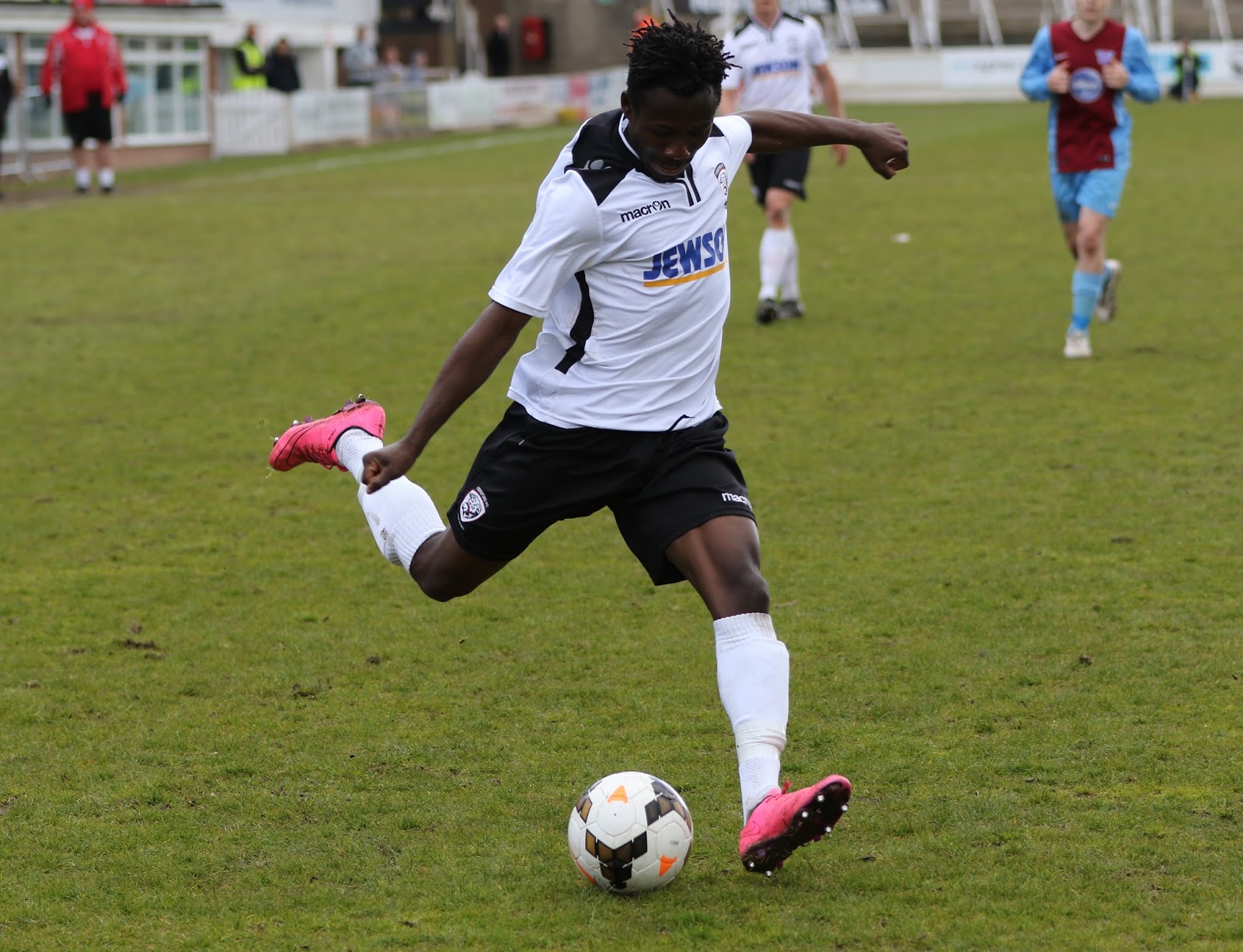 Playing towards the Meadow End in the first half, Hereford started the derby brightly creating the first clear cut chance of the game. Pablo Haysham got on the end of Sirdic Grant looping header, breaking towards goal. But after laying off to Mustapha Bundu, his subsequent right footed shot was charged down by Kane Kahaki, reaching Grant on the edge of the area, teeing up Bundu. But once again Bundu’s shot took a deflection as the ball went behind for a fruitless corner.