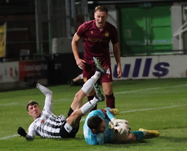 Ustabasi was booked for pulling back Melhado. Melhado had another good game and crossed to find Rus whose header was palmed out by Urwin, Rus reacting to stab home for a deserved lead and it looked as if Hereford would go on to win comfortably.
