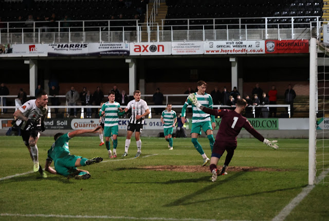 It took until the midway point of the half for Hereford to take the lead. Jack Evans and Ryan Lloyd combined well down the left, with a well delivered ball to the far post cut back by Amadi-Holloway for Storey to turn home from close range.