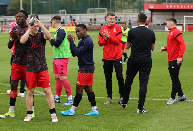 They left it late, the winner came in injury time, but Hereford's players had every reason to celebrate their victory at Brackley yesterday afternoon.