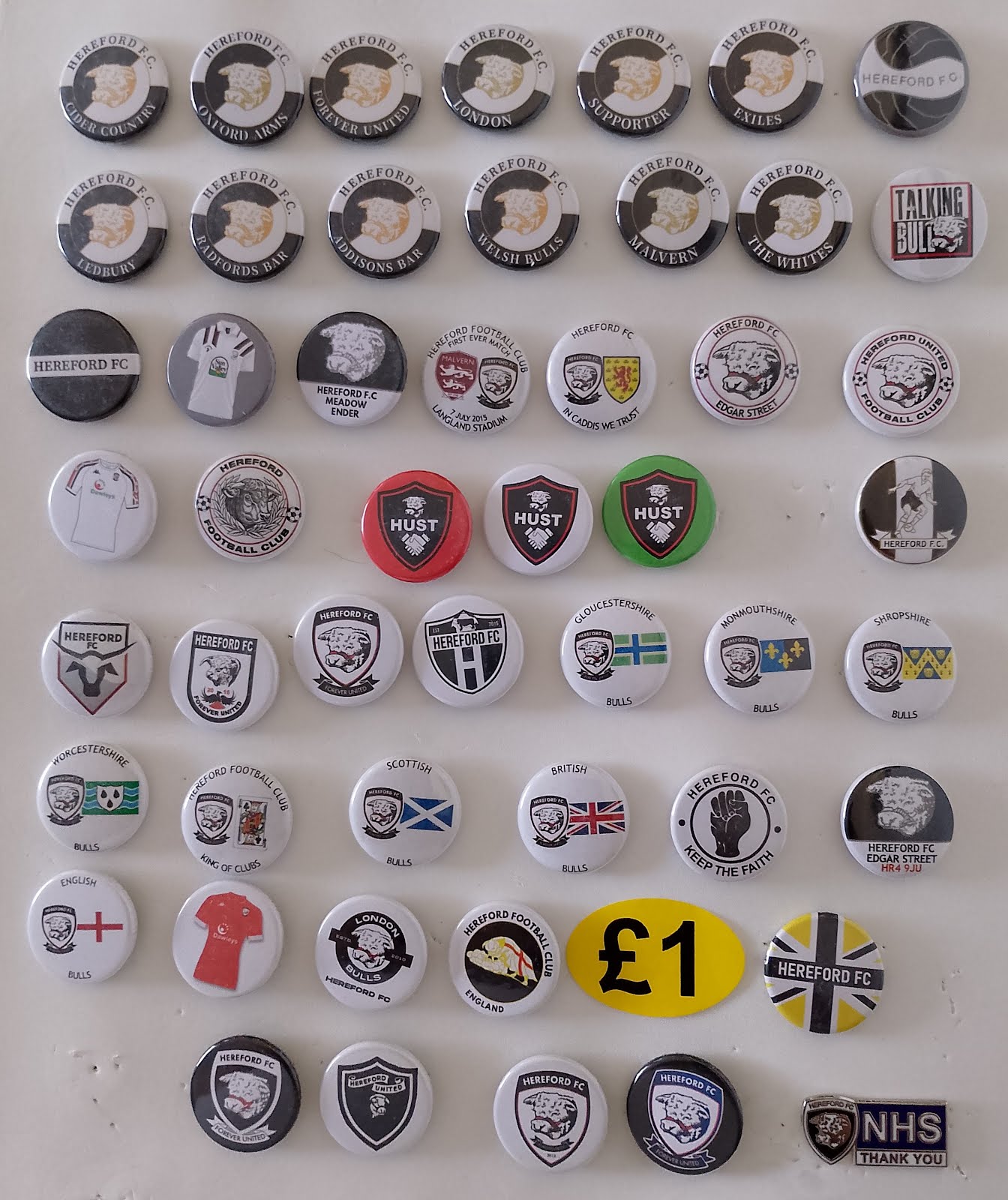 A large selection of HFC pin badges will be on sale this Saturday v Warrington Town. All the badges pictured are available at £1 or £3 each ( cash only ) from a sales point adjacent to the matchday ticket office. As usual all net proceeds go directly to HFC.